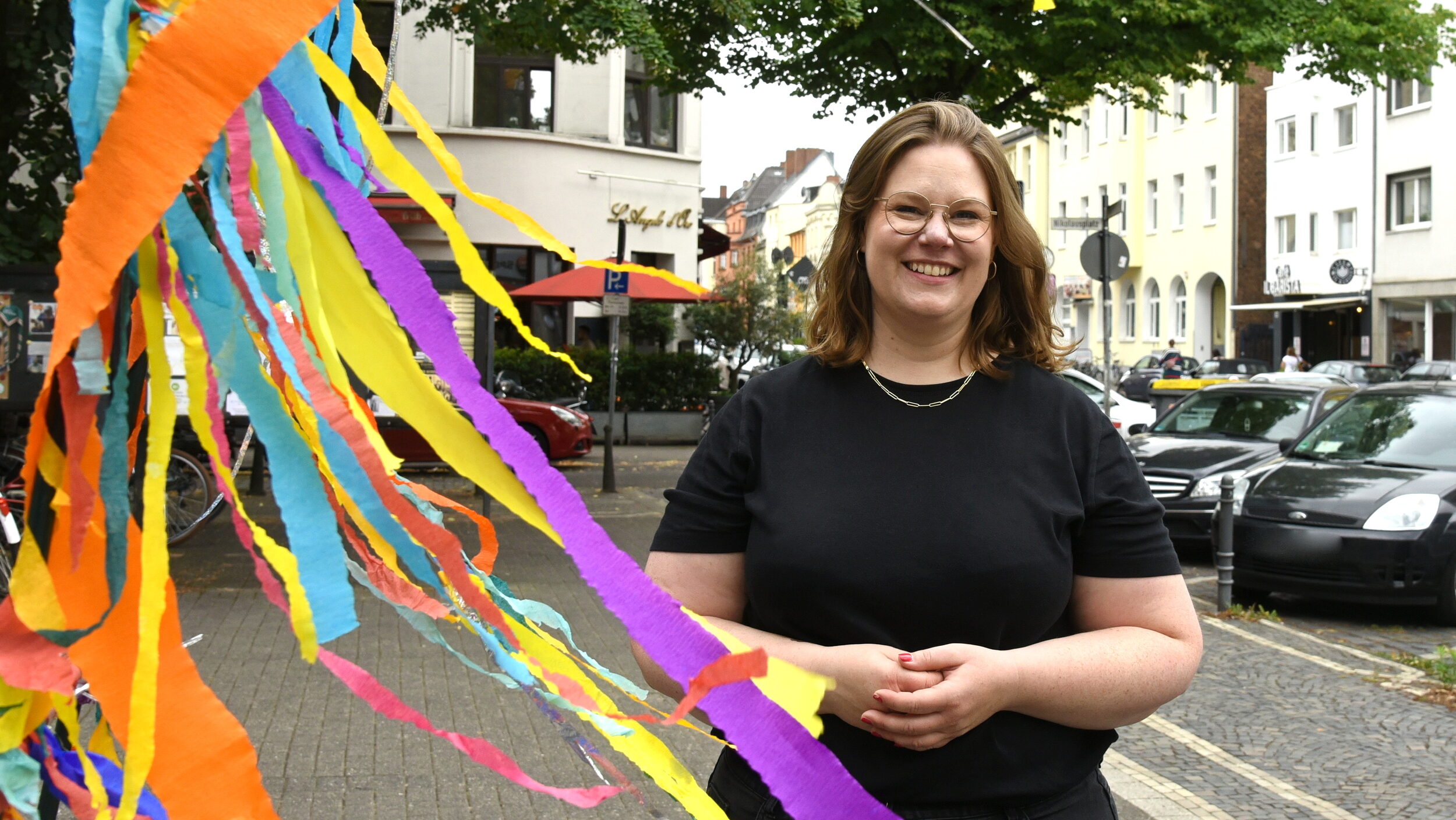Im letzten Jahr feierte die Aktion „Mehr-als-Noten-Segen“ ihre sehr gut angenommene Premiere. Zur Neuauflage am letzten Schultag vor den Sommerferien hatte Pfarrerin Mareike Maeggi den bewährten Torbogen in die Laufrichtung der jüngeren wie älteren Passanten auf dem Vorplatz von St. Nikolaus an der Berrenrather Straße gedreht. Obendrein war das Metallgestell mit noch mehr farbigen Kreppbändern geschmückt. Diese bewegten sich im Wind und machten das Arrangement zu einem bezaubernden Blickfang. „Wirklich neu in diesem Jahr ist aber, dass unsere Aktion vom Netzwerk ,hier+weiter – Evangelisch leben in Köln’ und ,#himmelaufkoeln’ organisiert worden ist“, informierte Maeggi.