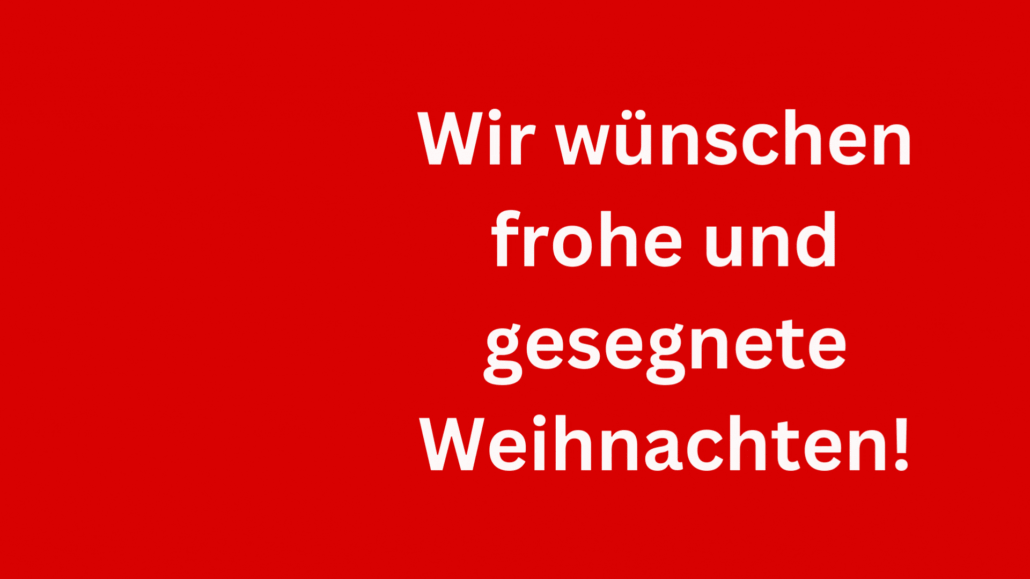 Heute möchten wir Ihnen allen frohe und gesegnete Weihnachten wünschen! Möge diese besondere Zeit von Liebe, Frieden und Harmonie geprägt sein. Wir wünschen Ihnen unvergessliche Momente im Kreise Ihrer Lieben und mögen Sie neue Hoffnung für das kommende Jahr schöpfen. Lassen Sie uns die Botschaft von Nächstenliebe und Zusammenhalt leben, nicht nur in dieser besinnlichen Zeit, sondern das ganze Jahr über!